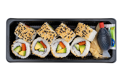 8x Classic Veggy, 8x Mango Rainbow Veggy, 8x Fresh Rucola Veggy, 8x Veggy Easy 24x Maki (8x Gurke, 8x Avocado, 8x Paprika)